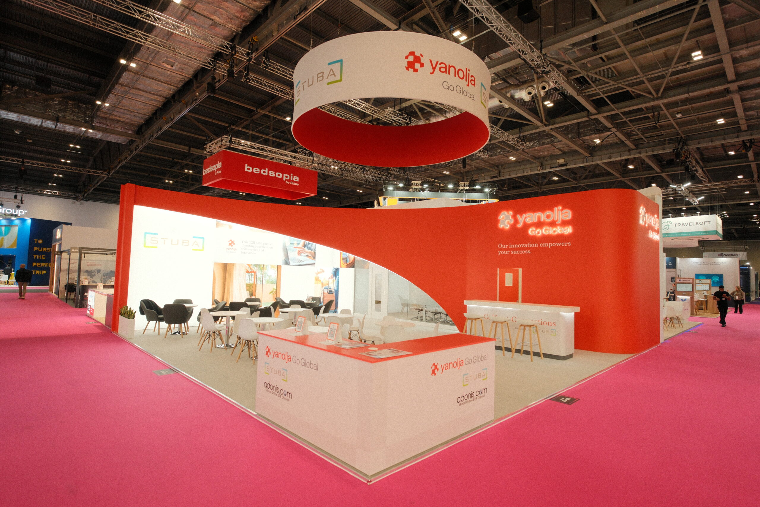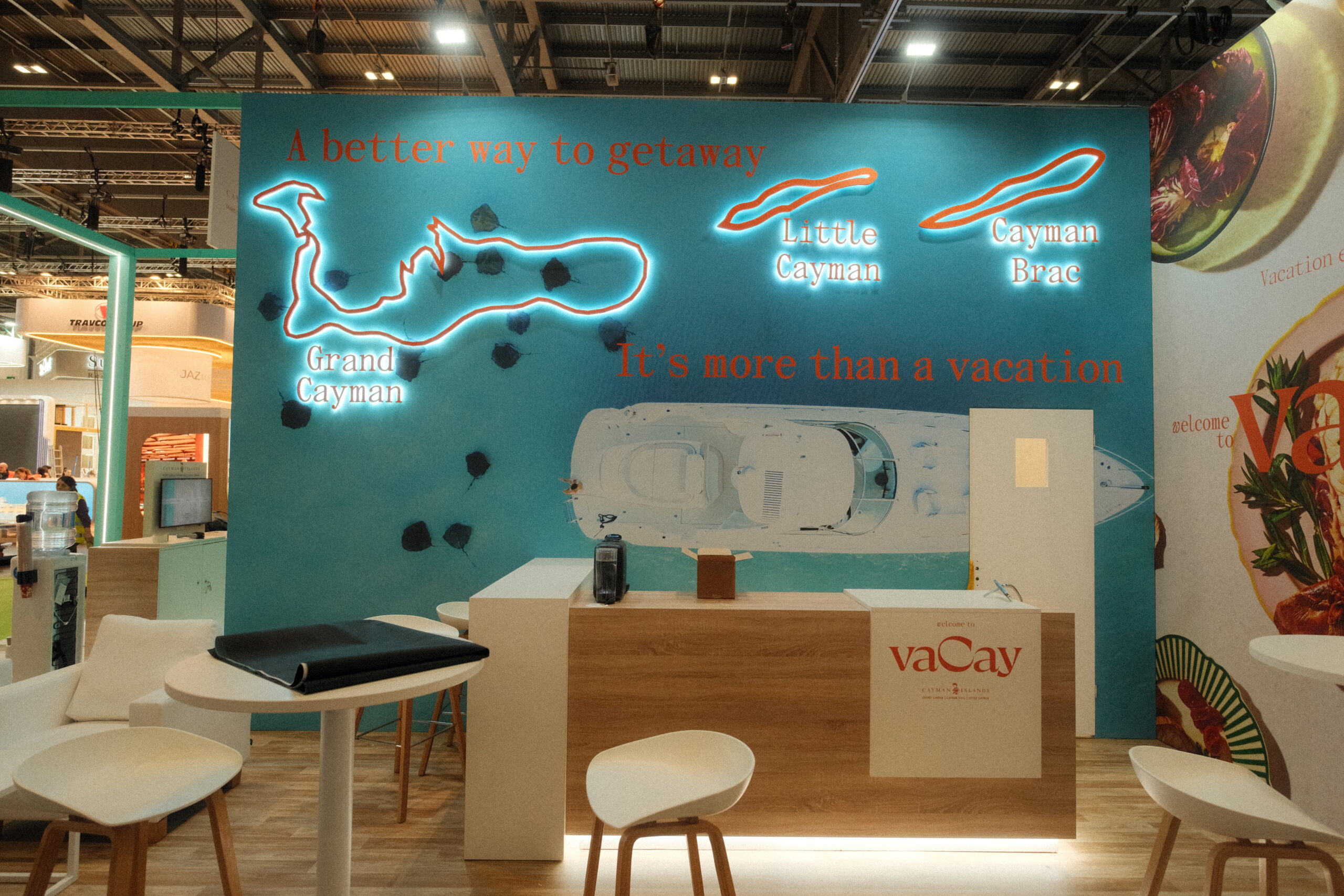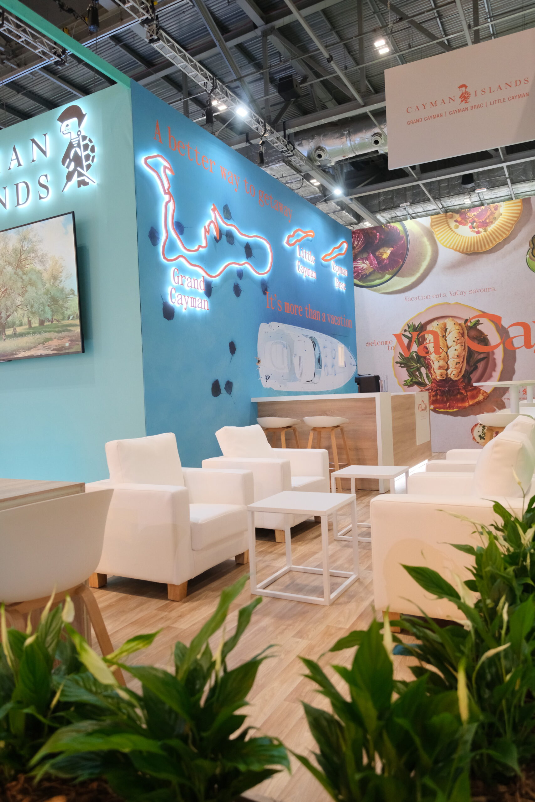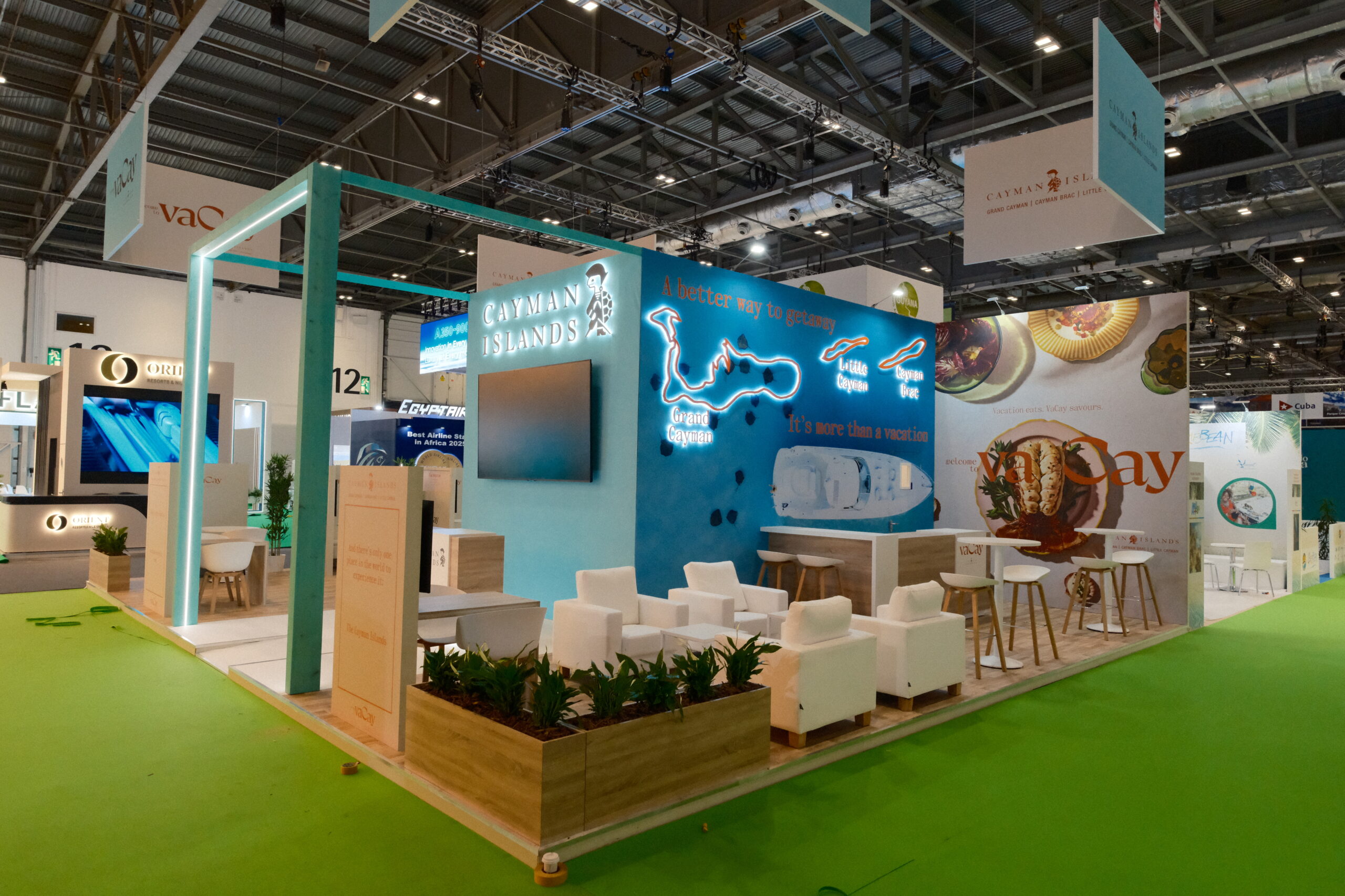 We have plenty of experience working with multiple clients at the same event, with our teams delivering the same high standards of professionalism and workmanship across all our projects. Our work at WTM London is no different, with major stands created for both Yanolja Go Global and the Cayman Islands Department of Tourism – clients who rely on our expertise and experience to help them get their messages across.