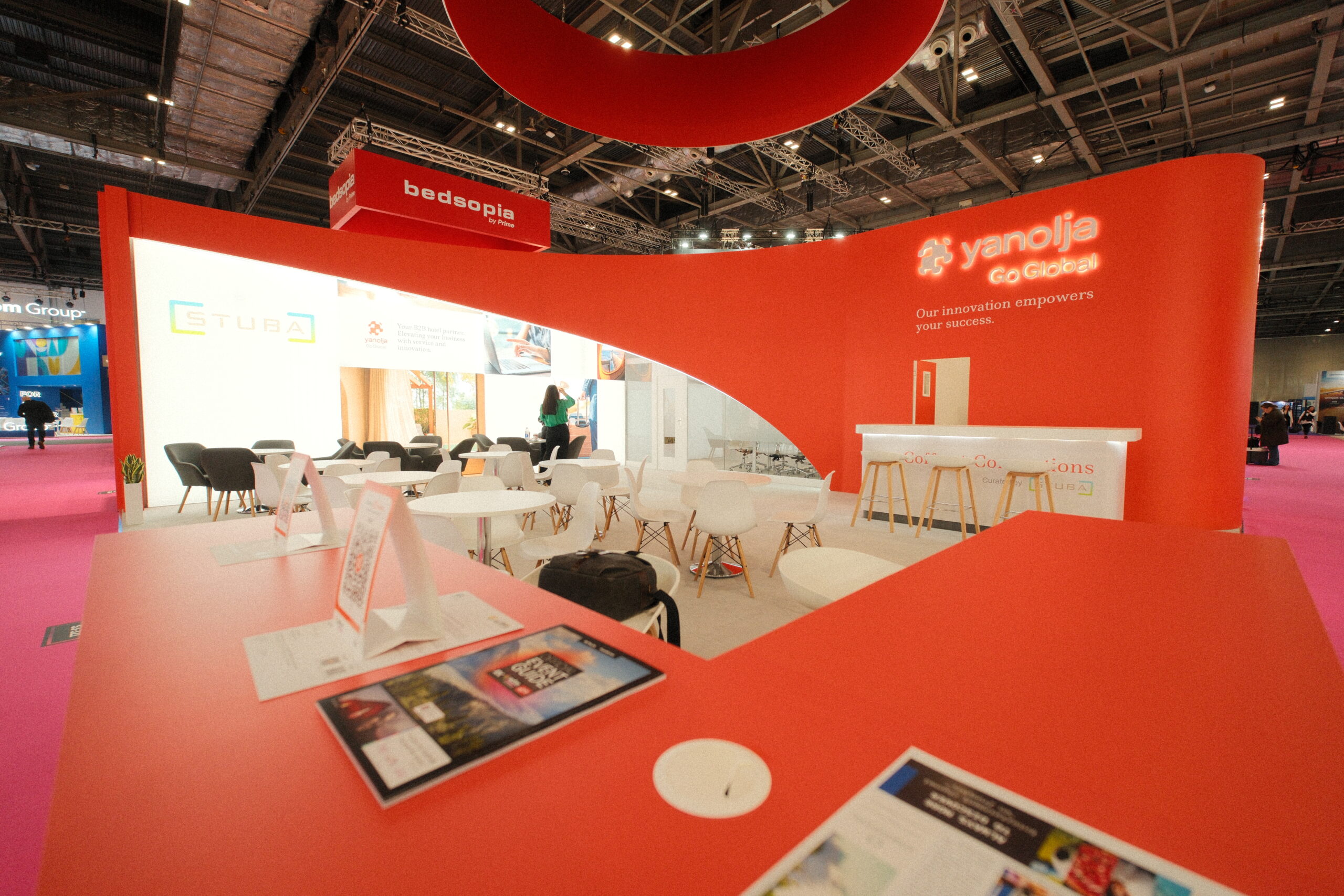 For Yanolja Go Global, we combined flowing lines and soft arcs for a polished and professional presence that helps the business talk about its cutting-edge tech platform. For the Cayman Islands team, we incorporated the client’s new branding into an immersive and aspirational stand – a visually distinctive and highly-functional base where they could tell their compelling brand story.